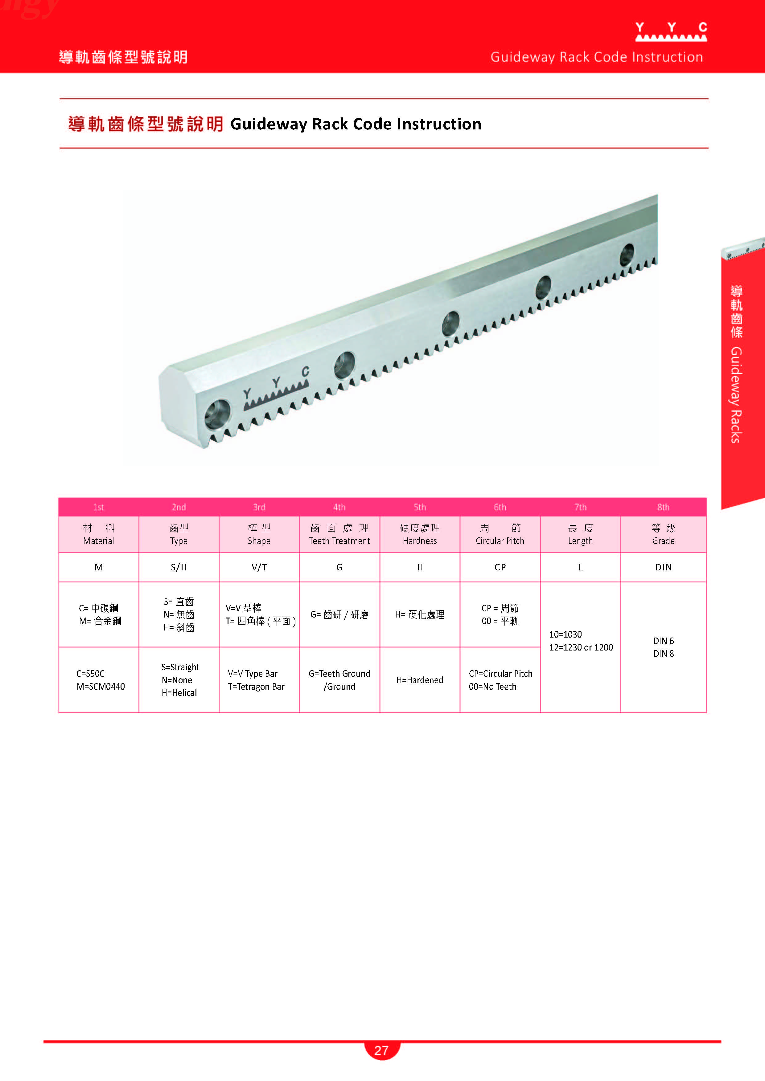 Yuan Yi Chang Machinery has 40 years of experience, with ISO 9001 certificate and work projects with Industrial Technology Research Institute. Corresponding to smart manufacturing trend globally, YYC offers different series of transmission parts and equipment including Rack, Guideway Rack, Pinion, Roller, Planetary Reducers, Backlash Free Reducers.